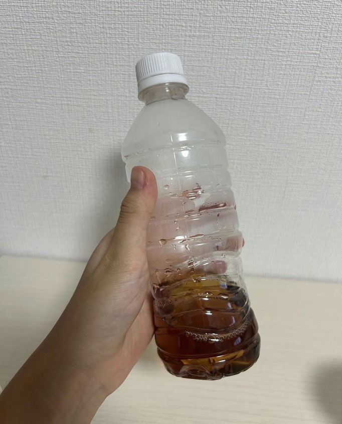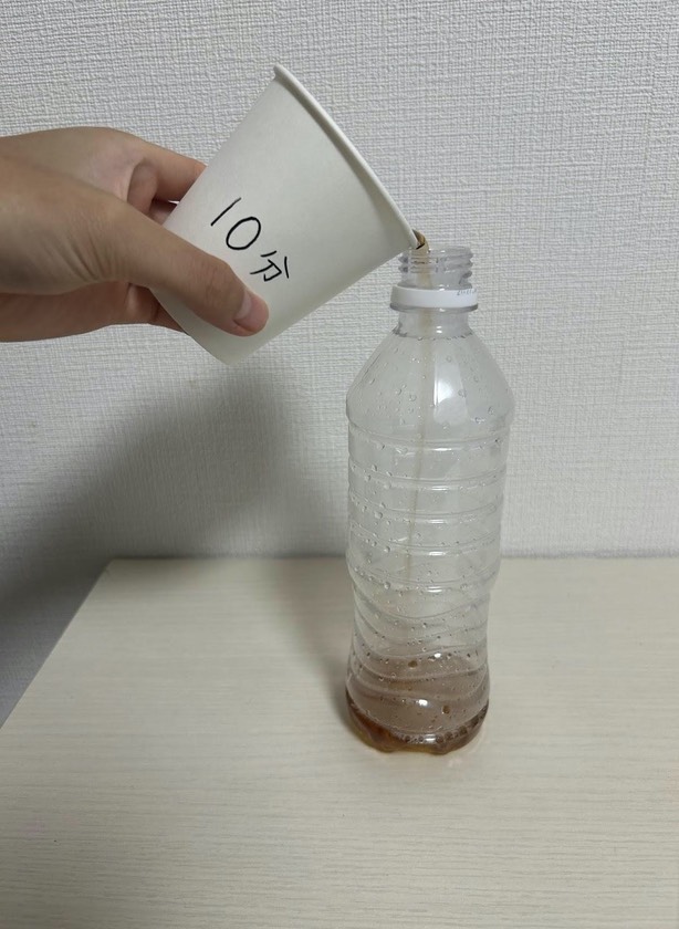 十分冷えたらお茶をペットボトルに移し、10秒ほど上下に振る。