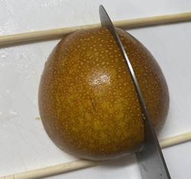 - 水分が多いから、思い切って包丁を入れた方がいい