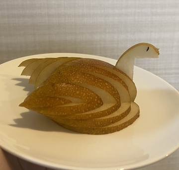 最近両親から梨をもらった。親からもらった梨、ただ食べるだけではもったいない!なんて考えているうちになんとなく飾り切りに挑戦してみたくなった。いろいろ調べてるうちに“スワン”を見つけて、「これ作れたらすごくない?」と思って挑戦開始!