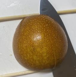 梨ひとつでこんなに集中できるとは思わなかったです。できあがったときは、ちょっと誇らしい気持ちになったぐらいです。