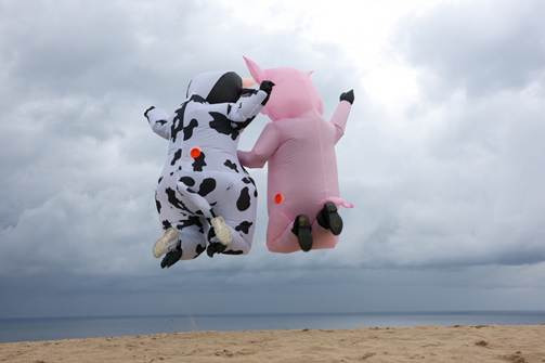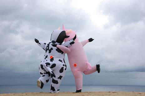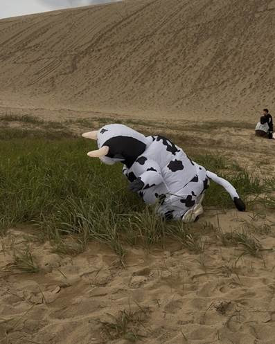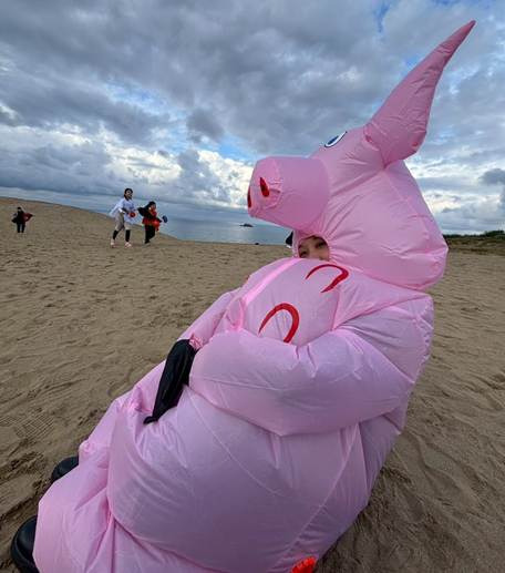 今年の砂丘ハロウィンに、私たちは 「牛とブタ」コンビ で参加!鳥取砂丘を舞台に、全力で仮装して笑いと注目をかっさらいました。