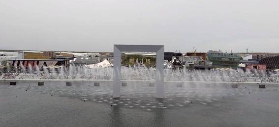 ご飯を食べた後は、一旦大屋根リングにのぼり、休憩がてら景色を楽しんだ。ちょうど12時を知らせる噴水を見ることができた。音楽に合わせて水が出るようになっていて、しばらくそれを見て過ごした。