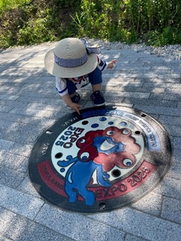 ミャクミャクマンホールと戯れる娘。