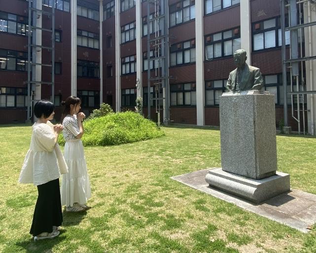 農学部の偉人・山田源太郎先生の像は、特に“崇めがい”がある。