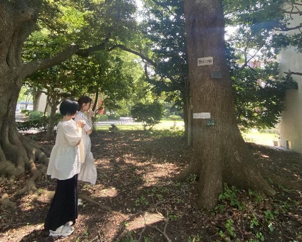 農学部横に静かにたたずむこの大木。根を張る姿に、何かしらの神聖さを感じた私たちは、自然と手を合わせていた。そしてなんといってもこの大木の名前、「啓成の楠」。人間形成コースの私たちが拝まないわけにはいかなかった。