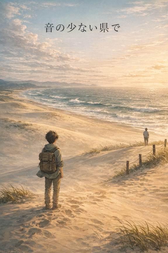最後に、この短編小説のイメージ画像を依頼したところ、以下のような画像を作ってくれた。「鳥取砂丘はもっと丘が高いイメージがあるんだけど…」ということは言及しないでおこうと思う。