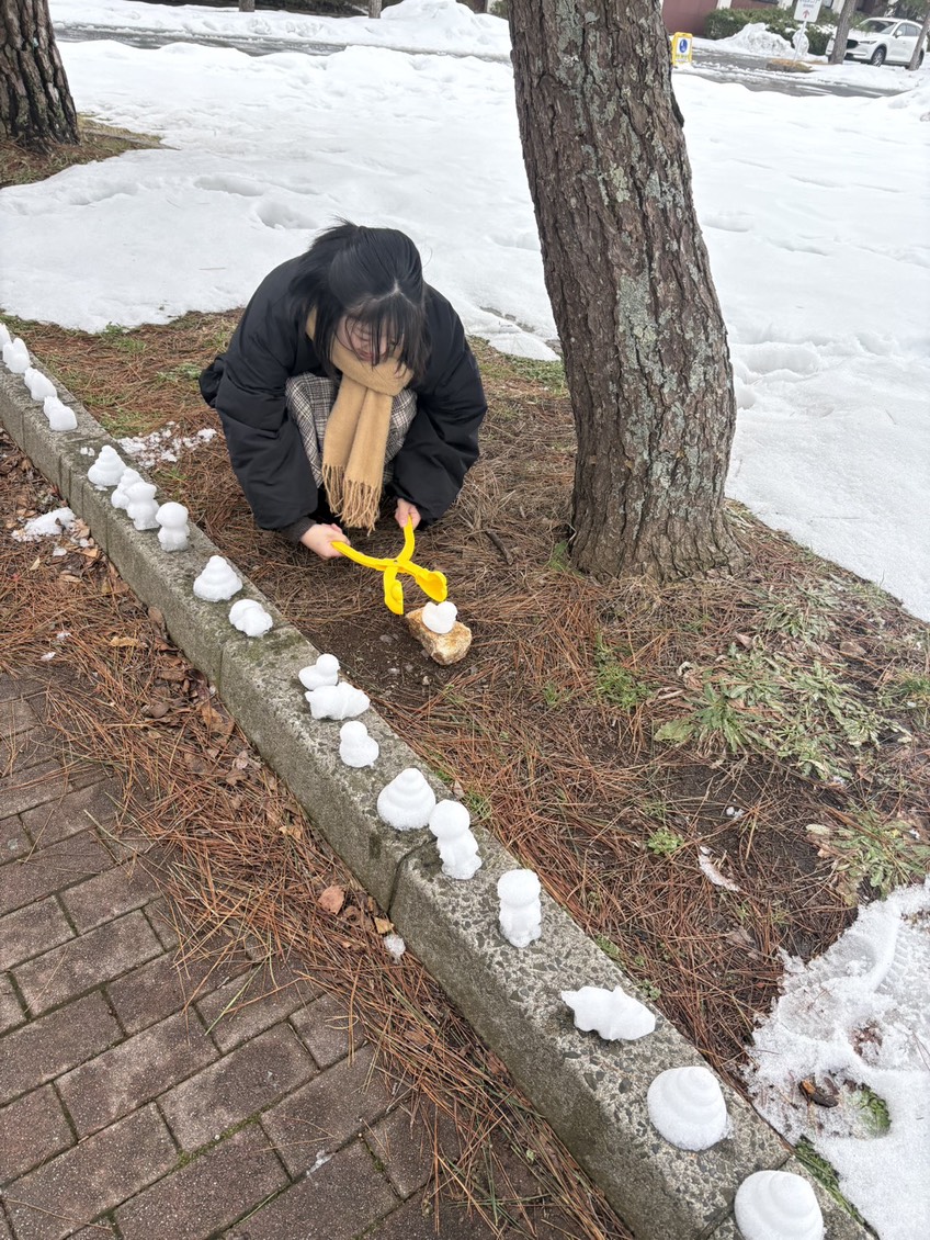 当然のように雪遊び欲は消えず、後日、雪の形が作れるキットを購入。鳥大の通路にたくさん量産しときました。水分多めの雪なので今回は形を作るのも余裕です!