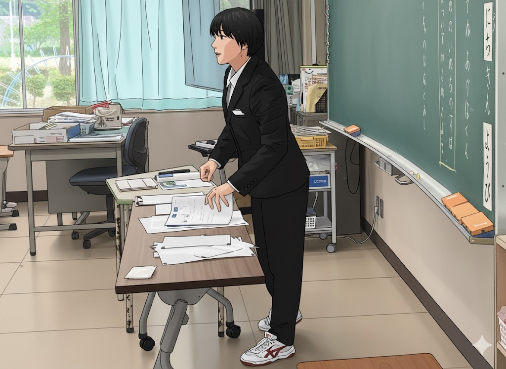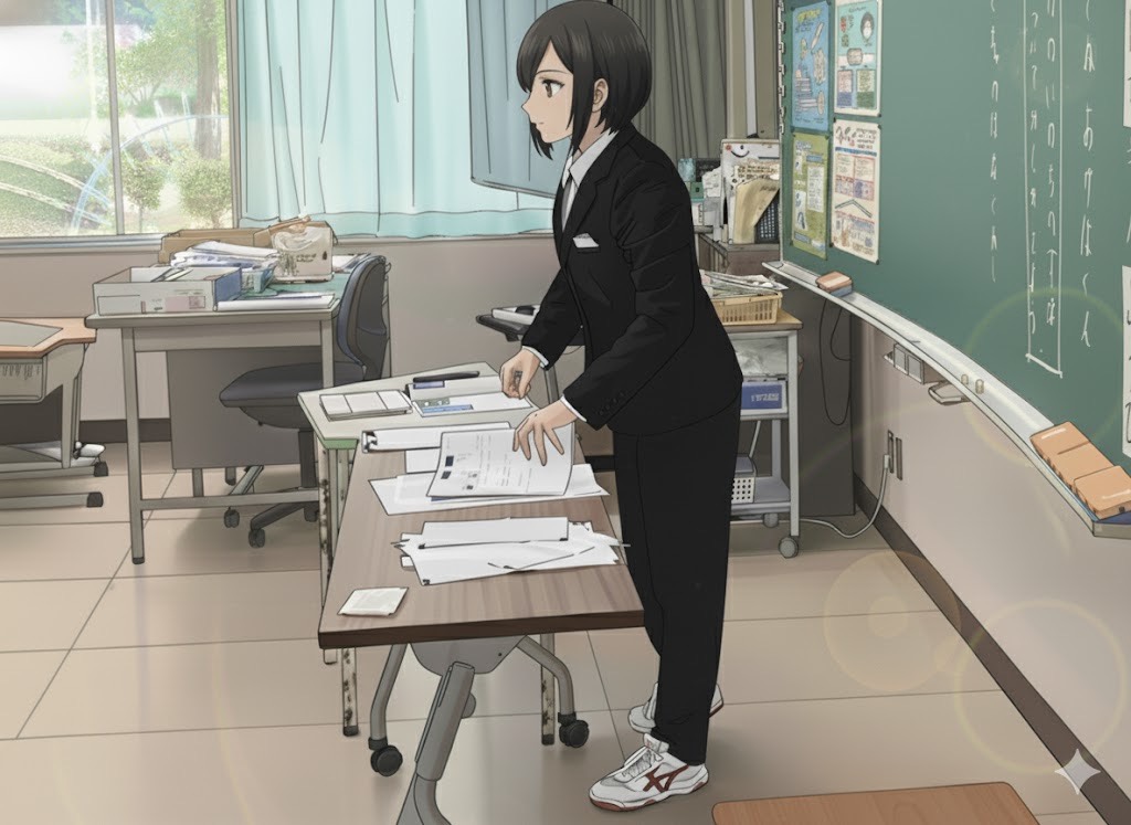 うん、これならイケる。実際には教員の髪型をポニーテールにしてもらうのに手間がかかったりと、想像以上にやり取りを行ったのだが、とにもかくにも、それらしいイラストは完成した。よし、この調子で、他のトレース画像をアニメ風に変えてもらおう。