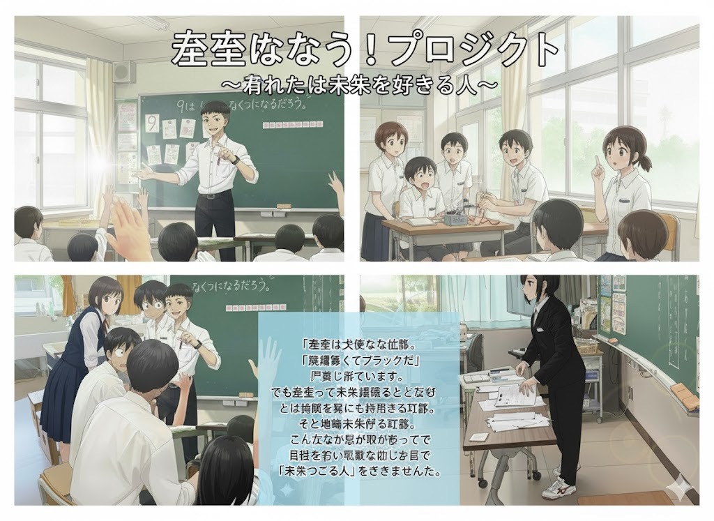 ちなみに実際に筆者に依頼されたのは、教員に興味を抱いている高校生に対して、「教員になりたい」と思わせるようなイメージ画像を作ってほしいということであった。なかなかハイレベルな注文だが、上記のような写真とAIがあれば、ひょっとしたら筆者でも何とかなるかもしれない。ということで、挑戦してみることにした。