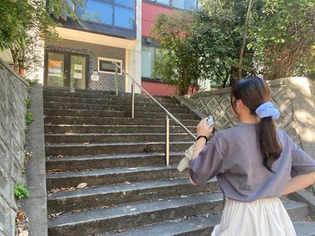 この入り口は、隠しルートと言ってもいいほど木の中にひっそりとあります。1年生の時は、階段を下りてくるたびに「ここどこ?」と何度感じたことか。最近になってやっと認識することができ、使えるようになりました。