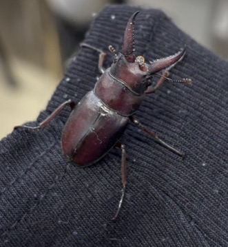2つ目はヒラタクワガタの写真。食堂マーレの出口付近で発見した。見つけた感想は「鳥大に多いらしいので見つけられて良かった」ということである。