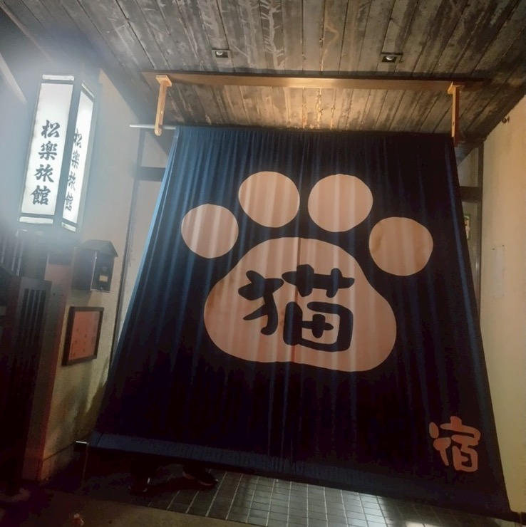 しまなみ海道を通り、夜遅くに旅館に到着。愛媛県大洲市にある松楽旅館でこの日の夜はお世話になる予定。聞いたところによると猫がたくさんいる旅館とのこと。
