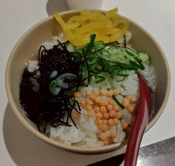 鯛飯をお椀につぎ、海苔、天かす、わさび、ねぎ、たくあんを乗せてお茶をかけてお茶漬けのようにして食べるようだ。さっきうどん食べてお腹いっぱいだと思っていたのに食べることができる。こういうときは胃袋は無限大になる。