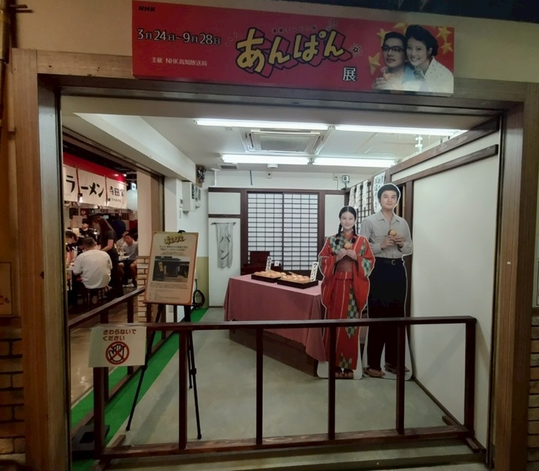 まずはひろめ市場というところで何か食べるものを探したのだが、人が多すぎてやめることにした。また、高知は現在放送されているNHK連続テレビ小説「あんぱん」の舞台らしく、一部が展示されていた。