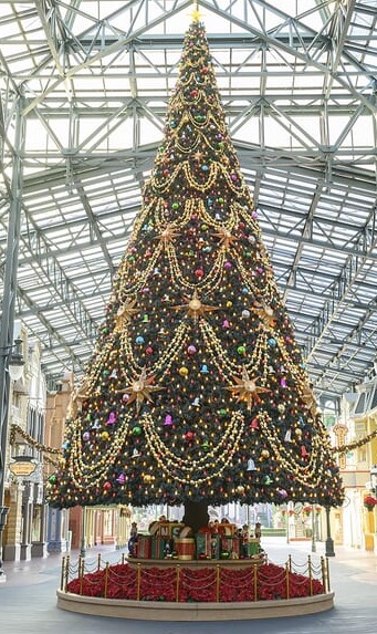 左が鳥取空港のクリスマスツリー。右はネズミの王国のクリスマスツリー