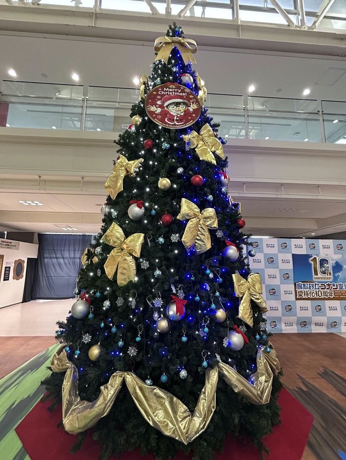 この感じだと鳥大で都会っぽい写真を撮るのは難しそうなので、範囲を広げてみた。鳥取空港に行ってみると、大きなクリスマスツリーが!!真ん中にいるのはコナン君だが、これは某ネズミの王国のクリスマスツリーにも見える!!(圧)これが果たして都会っぽいのかはよく分からないが、まあいいか。