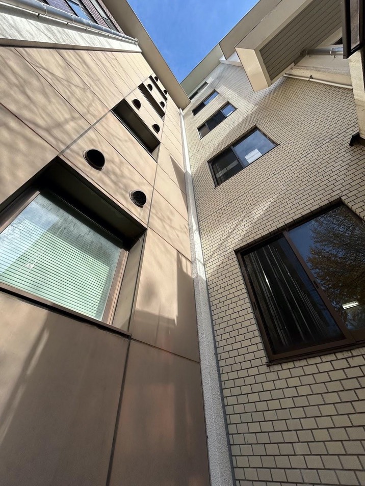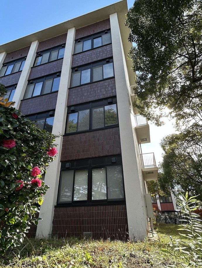 場所を変えて工学部棟に来た。木と被らないこと、なるべく下から撮ることを意識しすぎた結果、謎の角から撮った写真になってしまった。高層ビルというよりマンションっぽい気がする。