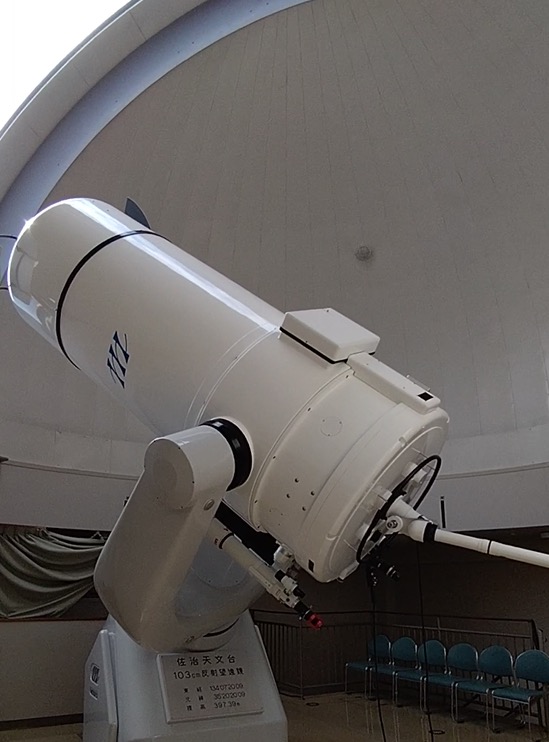プラネタリウム後は103㎝反射望遠鏡で水星を見せてもらった。曇天で見えたのはわずかな間であったが、ちょうど半月のように見えた。これだけ大きな反射望遠鏡だと、曇天の昼でも惑星を見ることができる。御見事…御美事…!水星は観測の機会がなかなか貴重なものらしく、非常に幸運であった。